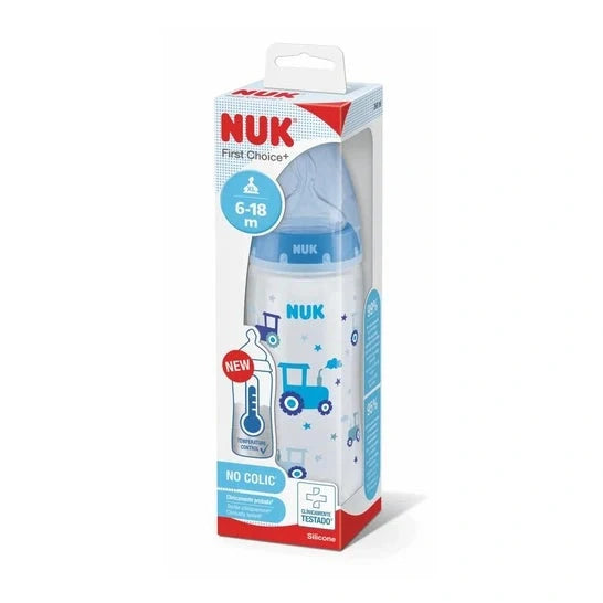 Biberón Nuk First Choice+ de 360 ml con tetina de silicona y cuerpo de polipropileno.