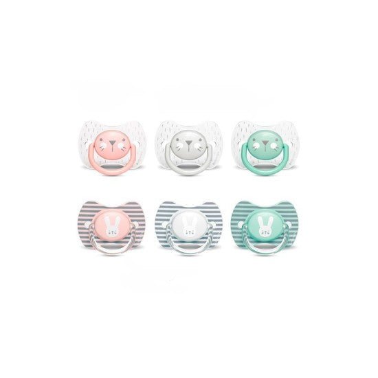 Chupete fisiológico de silicona para bebés de 4 a 18 meses, con diseño ergonómico y materiales resistentes.