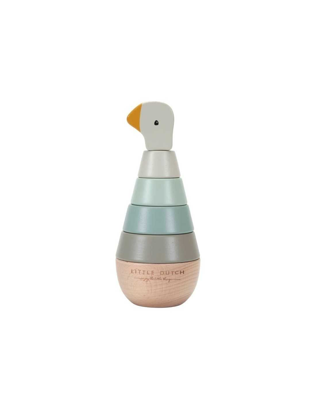 Juguete educativo de apilamiento con anillos de colores, ideal para desarrollar habilidades motoras en los más pequeños.