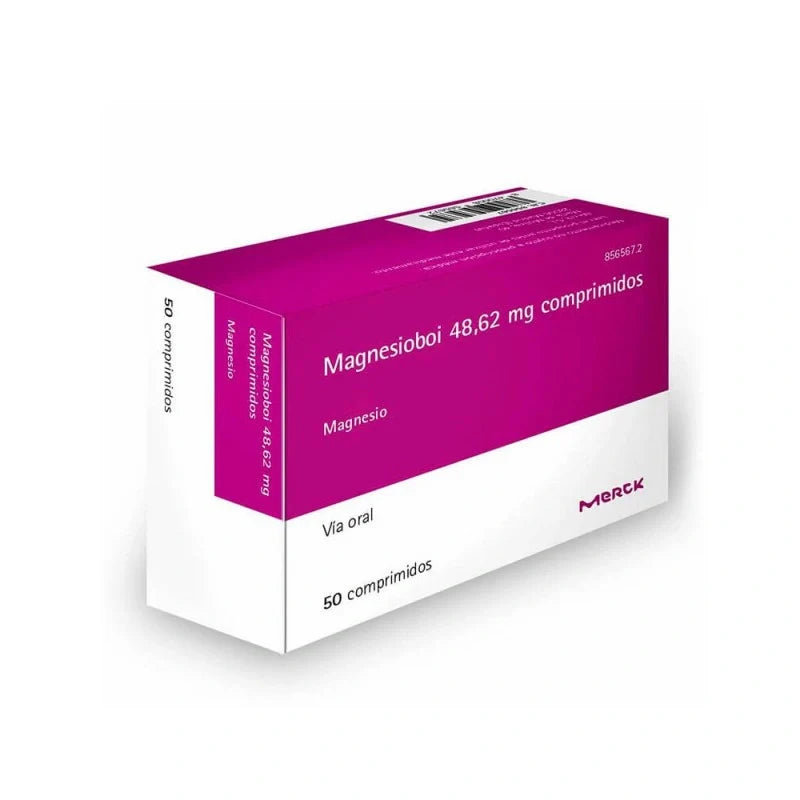 Suplemento alimenticio en forma de comprimidos, diseñado para proporcionar magnesio, un mineral esencial para el funcionamiento del cuerpo.