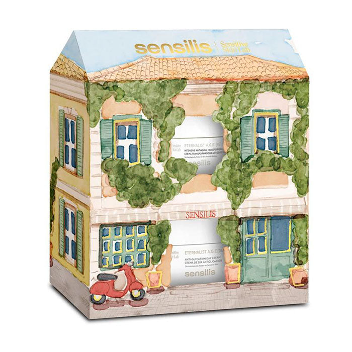 Es un pack navideño de Sensilis en un estuche inspirado en Roma perfecto para regalar. Contiene dos productos de la línea Eternalist A.G.E: