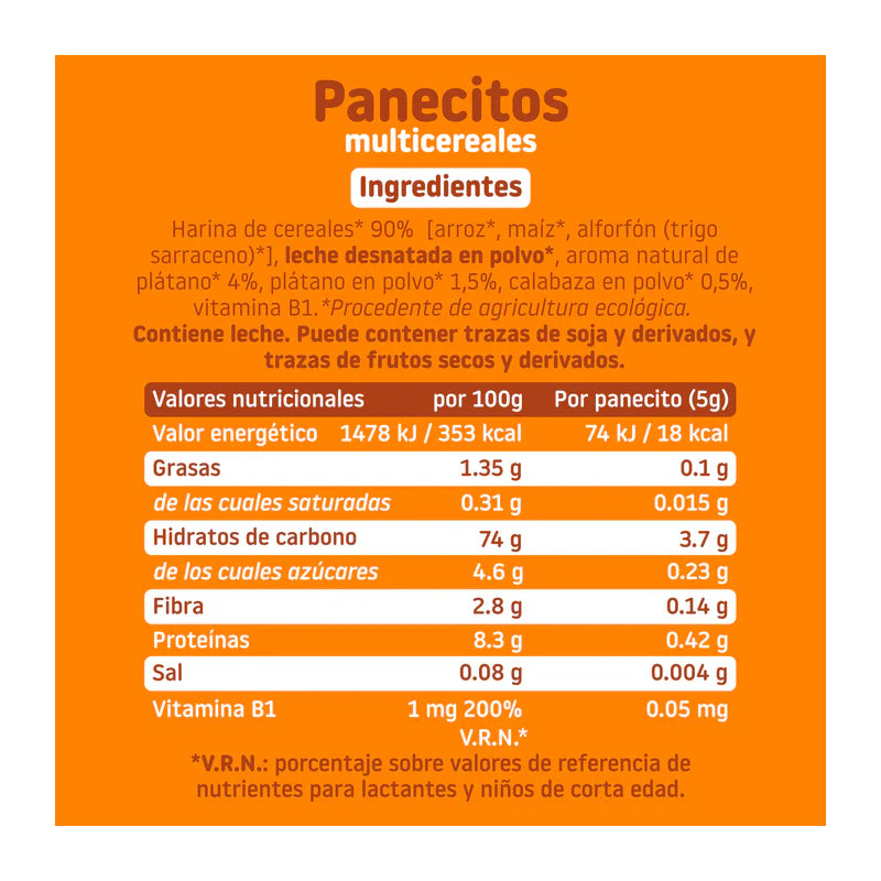 Panecitos ecológicos elaborados con cereales, plátano y calabaza. No contiene azúcar añadido, conservantes, ni colorantes.