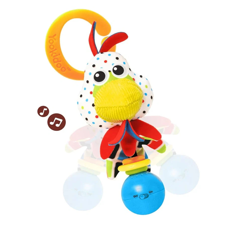 Sonajero en forma de pollo diseñado para la estimulación temprana del bebé.