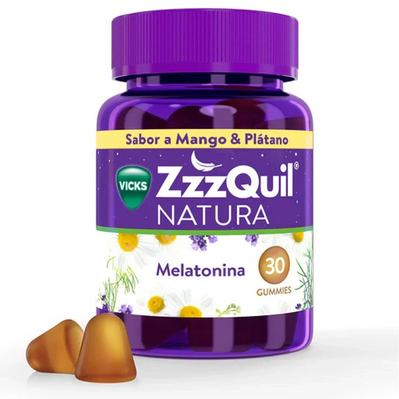 ZzzQuil Natura Melatonina Mango y Plátano 30 gominolas.
